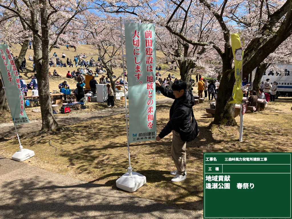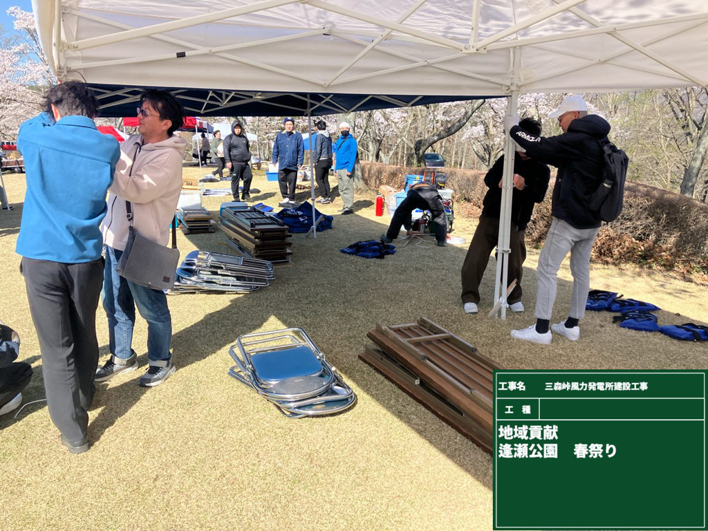 2026.04.14 お知らせ 4月12日(日)逢瀬公園春まつりに参加させていただきました あいにくの強風でテントが飛ばされるハプニングがありましたが、 片平地区・逢瀬地区の皆様と交流ができ楽しい時間を過ごせました。 工事でご迷惑おかけしますが、ご理解とご協力をお願いします。